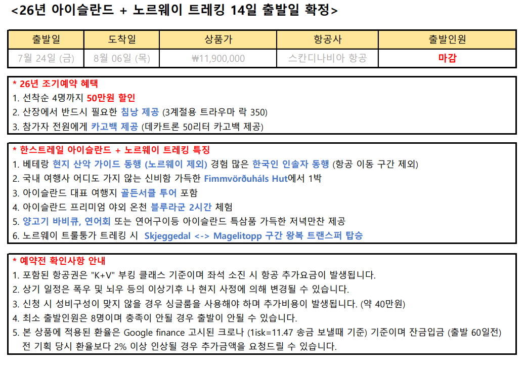 Ⅰ. 본 아이슬란드 트레킹 상품은 한국인 인솔자의 동행하에 안전하게 진행되는 여행 프로그램이지만 개별행동이나